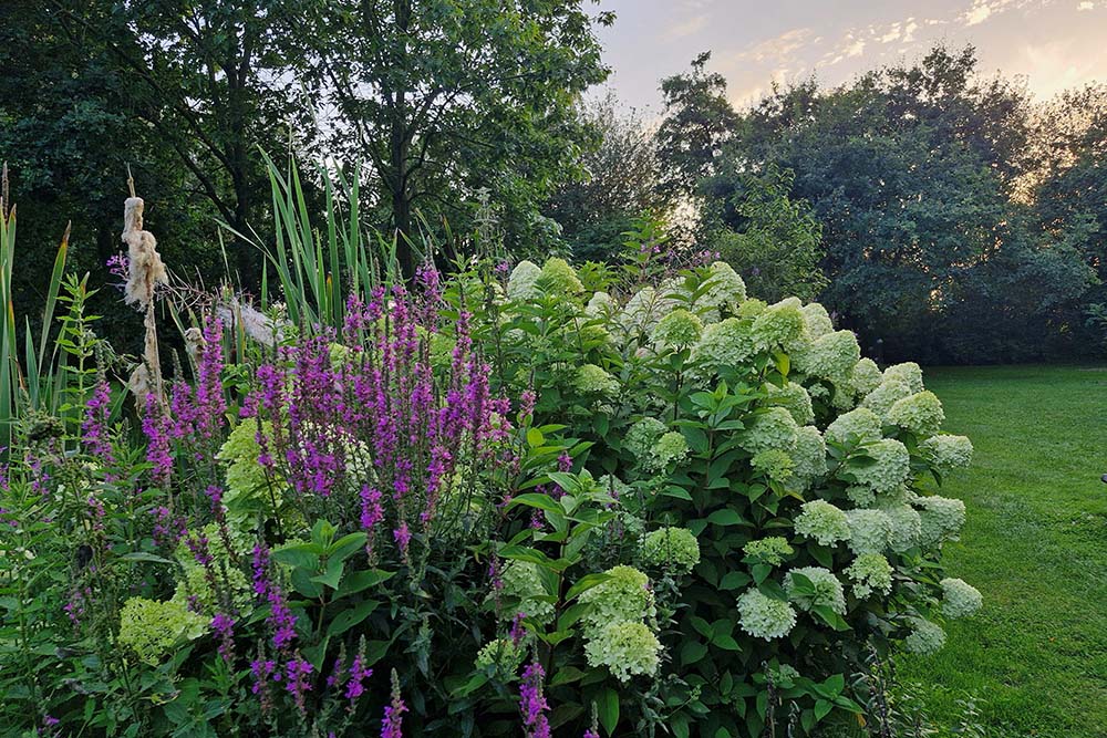 Het is een natuurlijke tuin met vijvers, sloten en vergezichten over de velden. Waar soms de reeën en koeien grazen.