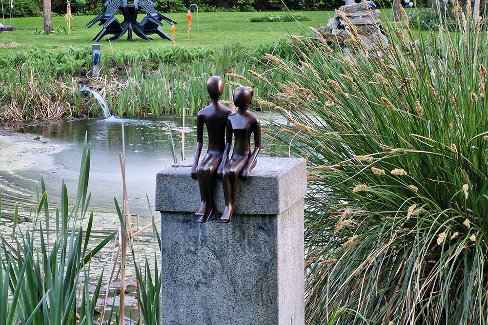 In de tuinen staan bankjes en stoelen, zodat je kunt genieten van kunst en de natuur. Er leven naast verschillende vogels, ook kikkers en allerlei insecten en vlinders.