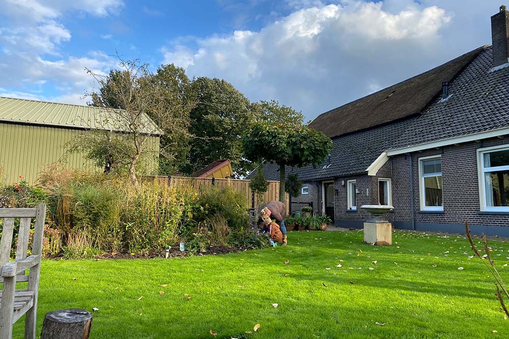 Onze tuin van 1.500 m2 ligt in het mooie kleine dorpje Westenesch dichtbij Emmen.