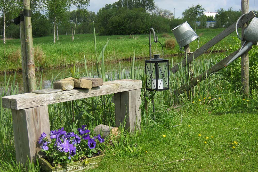 Borrowed Landscape: De tuin van 1.200 m2 grenst aan natuurpark Oeverlanden/de Wieden. De aangrenzende sloot is letterlijk de tuin binnengetrokken.
