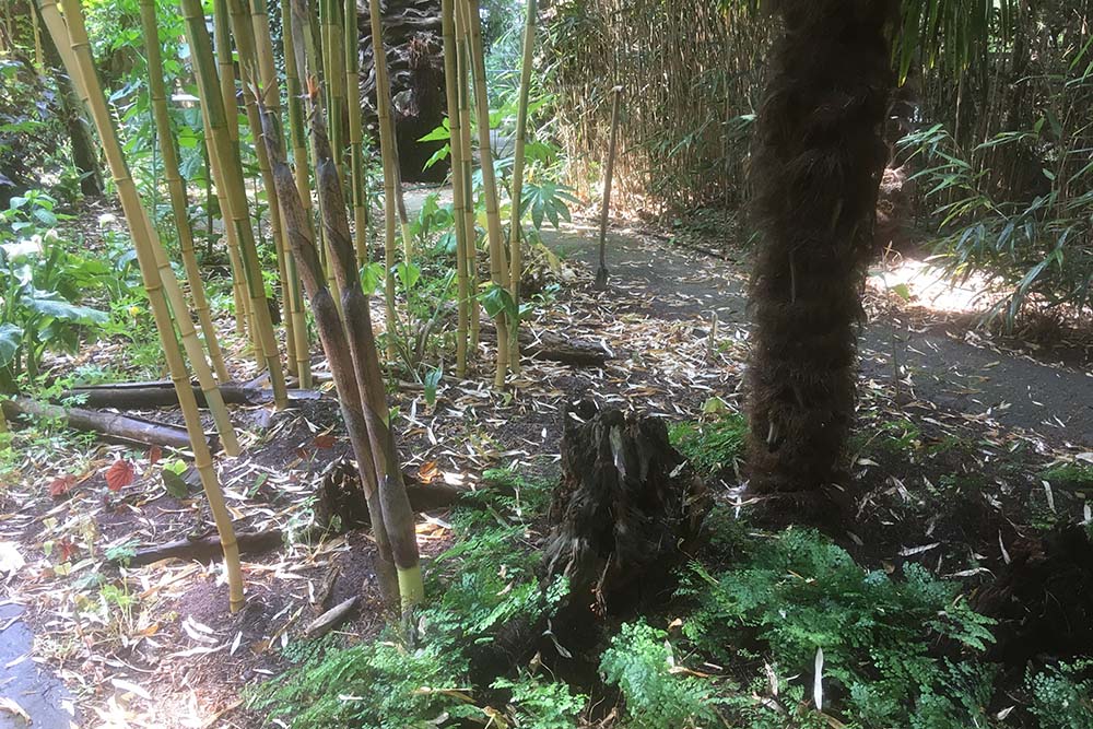 De tuinaanleg is begonnen omstreeks 1990 met de aanleg van een planten- en koi-vijver. De tuin is inmiddels 3.500 m2 groot. In de loop der jaren is de nadruk steeds meer komen te liggen op het creëren van buitenlandse sferen. Er zijn ongeveer 15 bamboesoorten, ook palmen, aronskelken en bananenplanten. Al deze planten staan in de volle grond, al vele jaren lang.