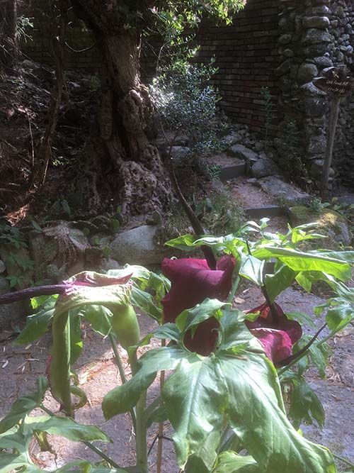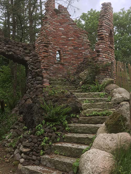 De tuin kent veel hoogteverschillen met traptreden en keermuurtjes. Er is tevens een volière. De tuin is nog steeds in ontwikkeling; 2 jaar geleden is er een torenruïne bijgebouwd.