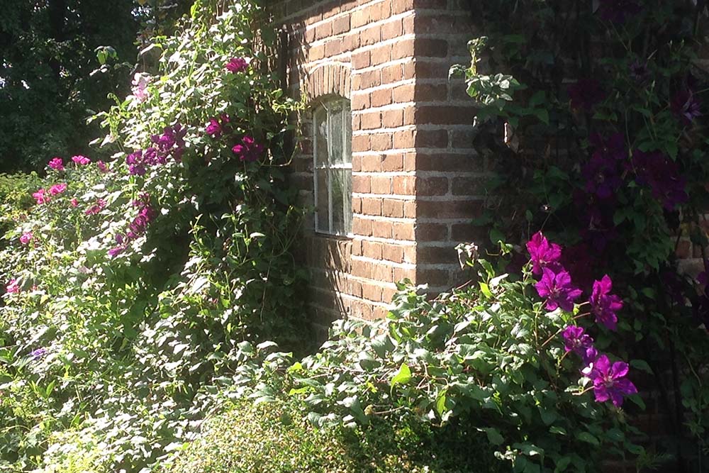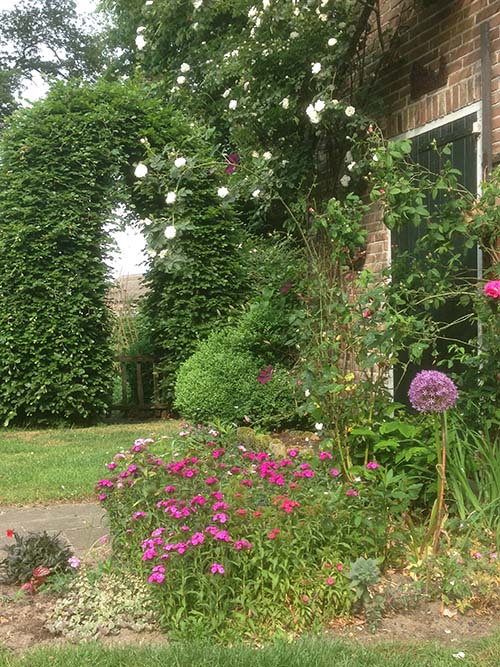 Onze liefhebberstuin van ca. 1.000 m2 ligt rondom een boerderij daterend uit 1620. In die tijd was het niet gebruikelijk een siertuin aan te leggen. Alle ruimte was bestemd voor het vee en de moestuin. Wij hebben beetje bij beetje wel kleine borders aangelegd met vaste planten en éénjarigen. Onze moestuin ligt nog op de oorspronkelijke plaats. In de boomgaard zie je oude en bijzondere fruitbomen waaronder in het voorjaar wilde narcissen bloeien. Kom maar kijken dan vertellen we nog meer.