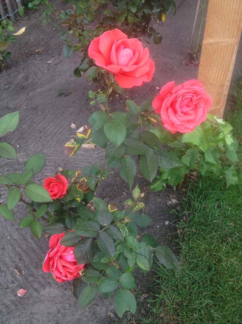 Rozen spelen de hoofdrol, hun volle, zachte geur hangt subtiel in de lucht en geeft de tuin een romantische sfeer. Tussen de rozen groeien lavendel, rozemarijn en eucalyptus, die samen een fris, kruidig aroma toevoegen. Kleurrijke bloemen zorgen voor levendigheid: tinten paars, roze, geel en wit wisselen elkaar af en trekken vlinders en bijen aan. De tuin (150 m2) krijgt een exotisch accent door palmachtige planten en een bananenplant, die met hun grote, weelderige bladeren een tropisch gevoel creëren. Ze vormen een mooi contrast met de meer klassieke bloemen en kruiden. Afwisselend wat fruitstruiken om te snoepen tijdens het werken in de tuin. Het geheel is een plek waar geur, kleur en vorm samenkomen.